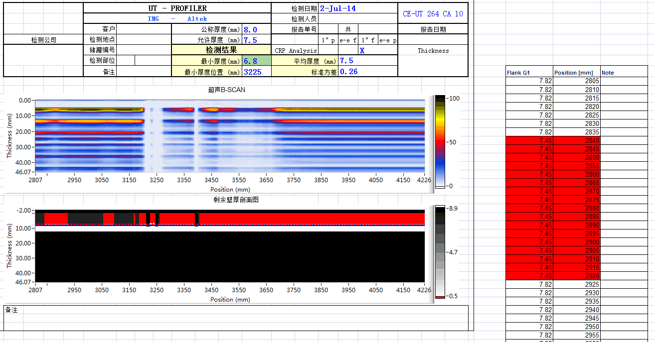 實時顯示及記錄厚度值和位置