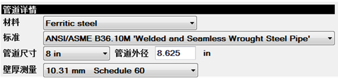 在軟件(jiàn)中的管道詳情輸入管道的尺寸和壁厚,如(rú)下圖所示: